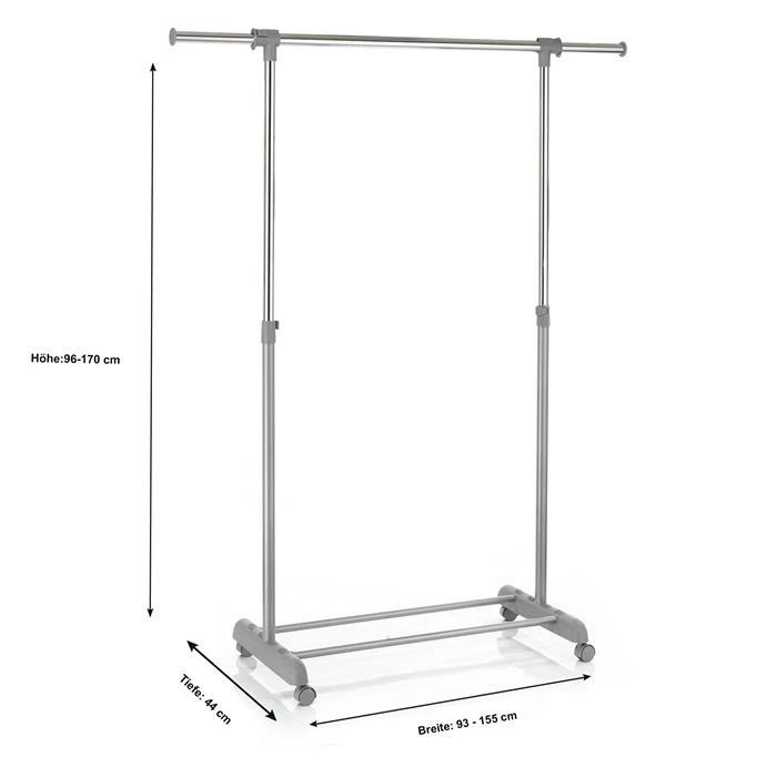 - Aufbaumaße Rollgarderobe: 93-155 x 96-170 x 44 cm (B x H x T)