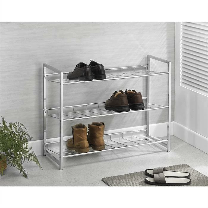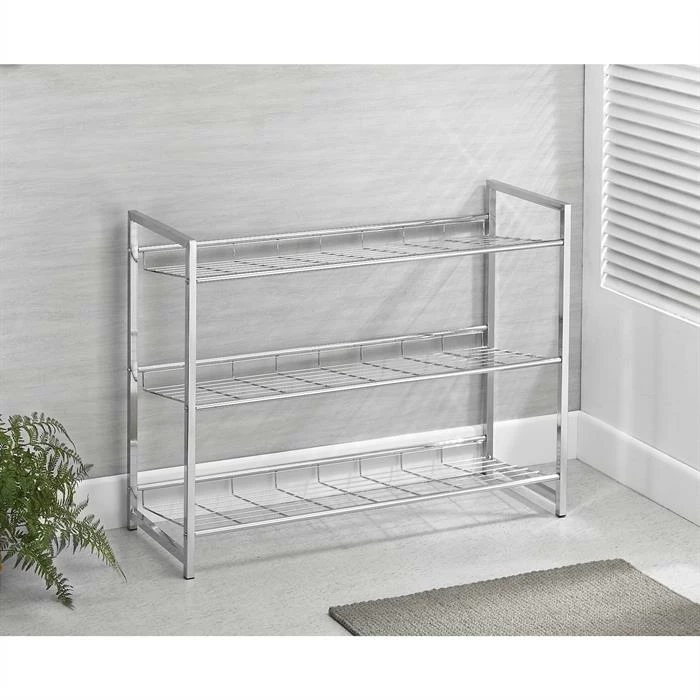 CARO-Möbel Schuhregal VALERIO Metall Verchromt, 3 Ablagen
