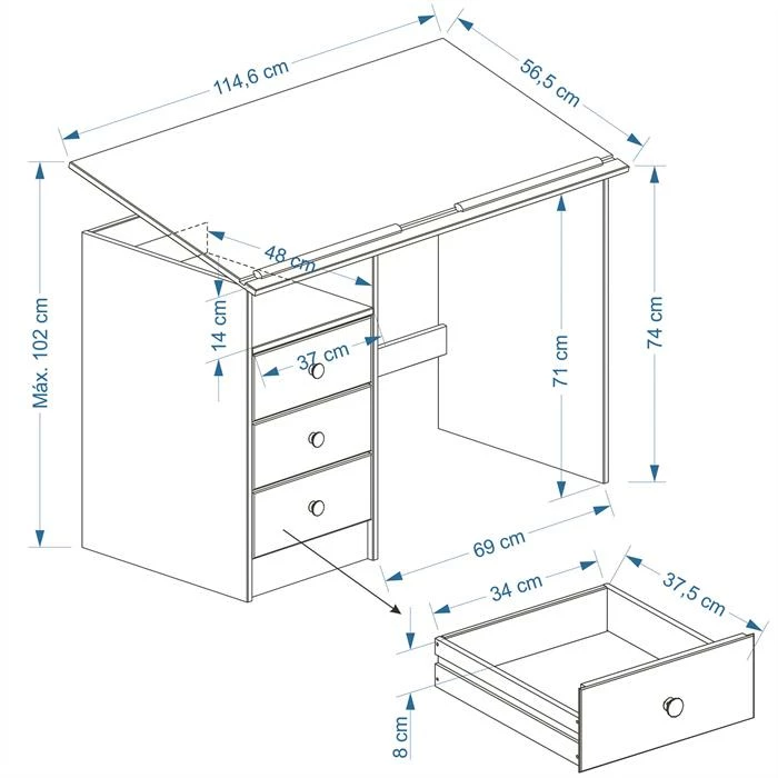 - 3 geräumige Schubkästen