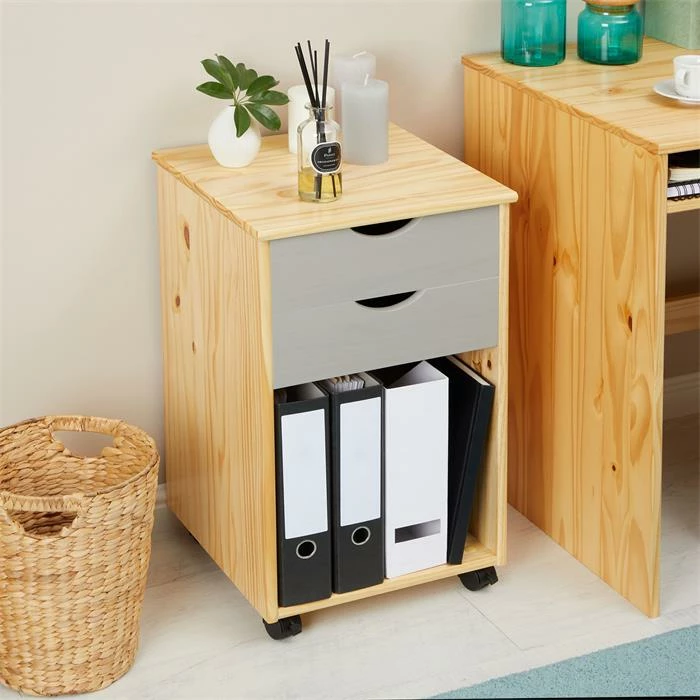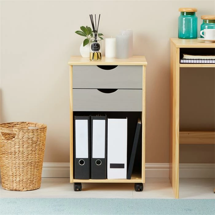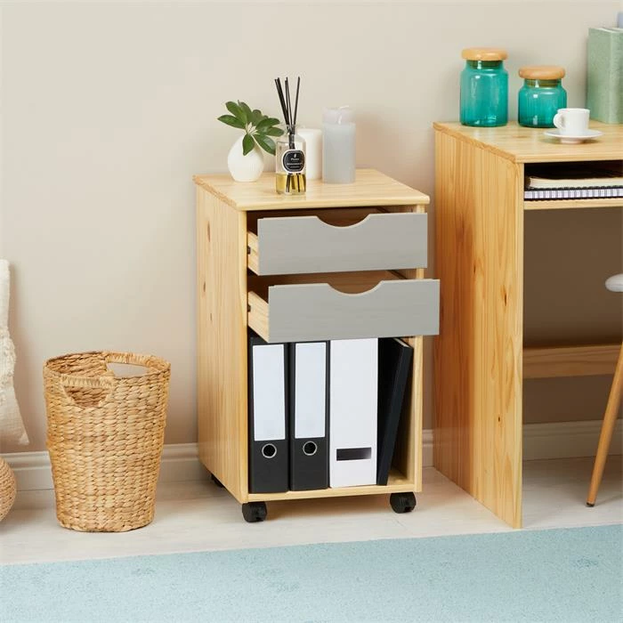 IDIMEX Rollcontainer KANO Mit 2 Schubladen Und 1 Ablagefach In Natur/grau