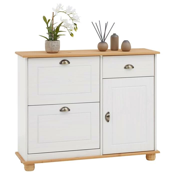 IDIMEX Schuhkipper BASIL Mit 2 Kipper Und 1 Schublade In Weiß, Kiefer Massiv