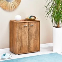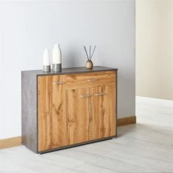 CARO-Möbel Schuhschrank LENNIS 2 Türen In Beton Dunkel/Wotan Eiche