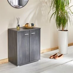 CARO-Möbel Schuhschrank LENNIS 2 Türen In Old Style/Beton Dunkel